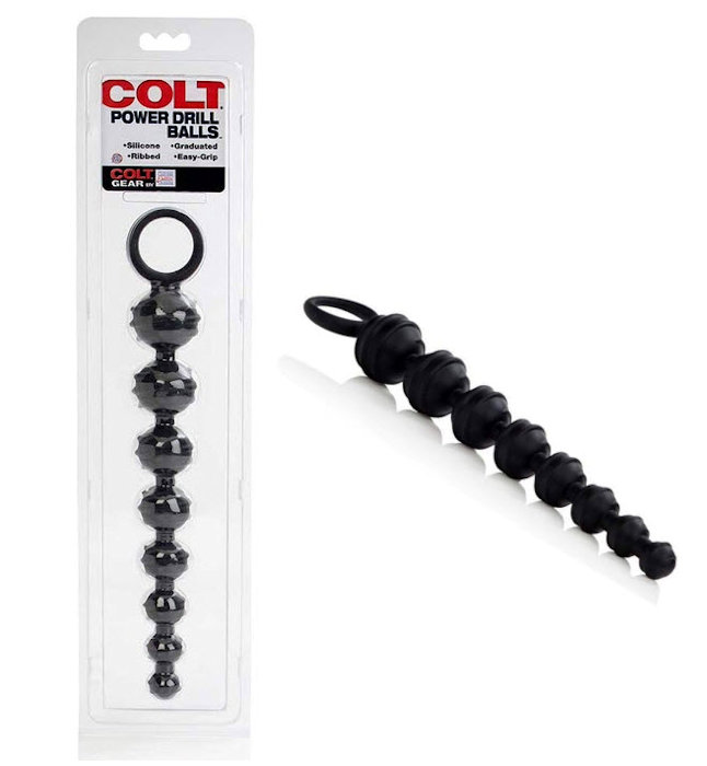 Colt creates a line of toys dedicated to the masculine pleasure seeker. Whether you’re a bashful beginner or an erotic expert, Colt’s toys are here to help you explore your adventurous side. The non-porous, hypoallergenic material pairs perfectly with your favorite water-based anal lubricants. Colt Power Drill Balls Black. Each bead on this sturdy, flexible string creates arousing stimulation from tip to tail. Incrementally increasing in size from teaser to pleaser.