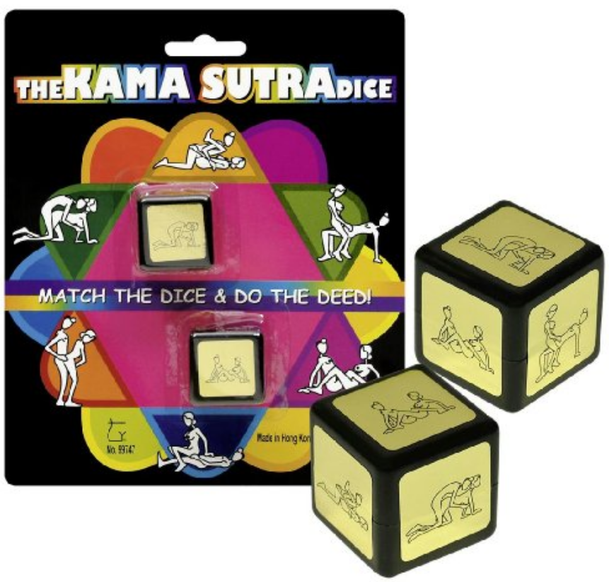 If your sex life consists of ''Been There...Done That!'', Roll the dice and find new positions and new places to your next thrill! One die sets the position, the othe picks the room.
