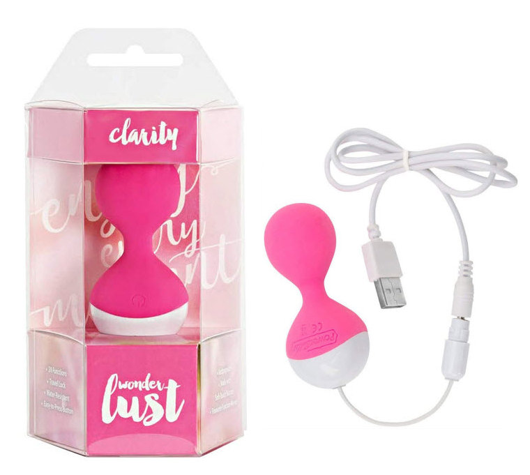 Clarity features a compact shape, which is discreet and meticulously designed. Its smooth texture gives an incredible sensation and makes it simple to keep in place. Wonderlust Clarity Pink has a smooth, velvety soft silicone finish. The bottom comes with a charging cord attachment which also doubles as a safety pull. Simply remove the cap, insert the charging cord and put the cap back on when charging is complete.