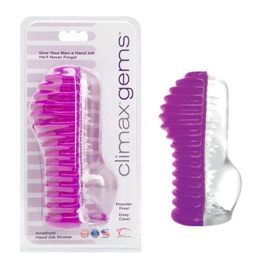 Supper supple TPR hand job stroker feels like soft skin. Add lubricant and slide the stroker onto his throbbing member pump it up and down. Triangular ribbed tunnel grabs his cock with every stroke. Textured exterior and raised nubs for maximum control even hands are slippery. Squeeze or loosen your grip to tease him with different sensations. Translucent side lets you watch every sexy stroke.