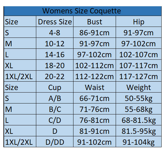 Coquette Sizing
