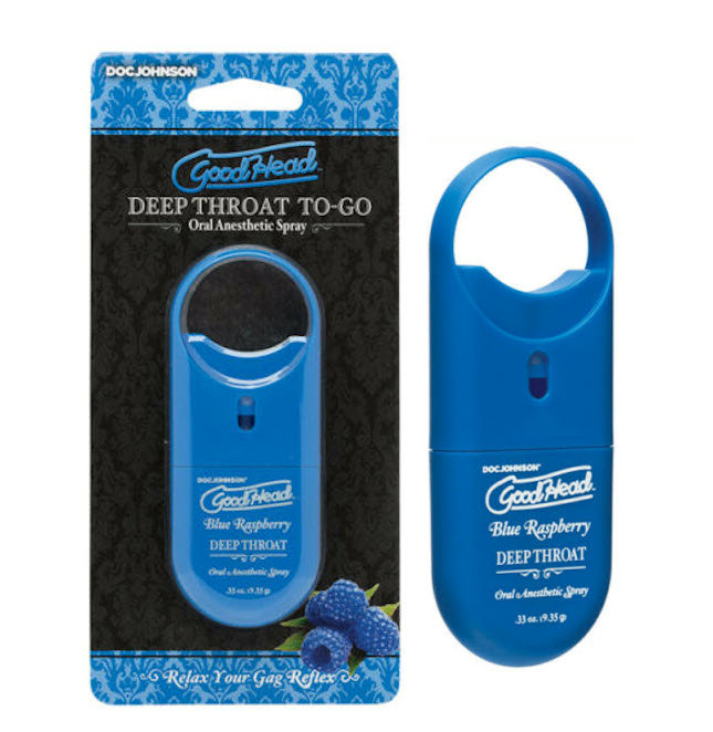 Go down easier. GoodHead Deep Throat Spray mildly numbs the back of the throat and suppresses the gag reflex to allow deep oral penetration without discomfort. This functional, flavorful spray in a convenient travel size is formulated for minimal medicinal taste and maximum effect with this delicious throat desensitizer whichhelps reduce gag reflex and discomfort. Convenient travel size, loop prevents accidental spraying and easily attaches to key ring, plus an easy-to-use spray container.
