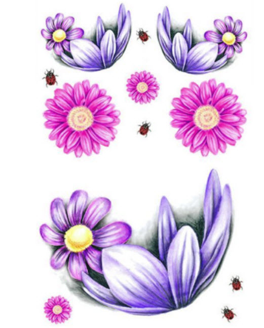 Temporary Tattoos, because Fashion isn't Permanent. Skyn Demure flower power 2 tattoo sheets (15 cm x 11 cm). Skyn Demure is dedicated to producing high quality, high fashion temporary ink. If you are toying with the thought of getting tatted up, but too afraid to make the leap, Skyn Demure temporary tattoos will satisfy your curiosity!. All hand drawn designs with exquisite detail to give an authentic look, just like a real tattoo.