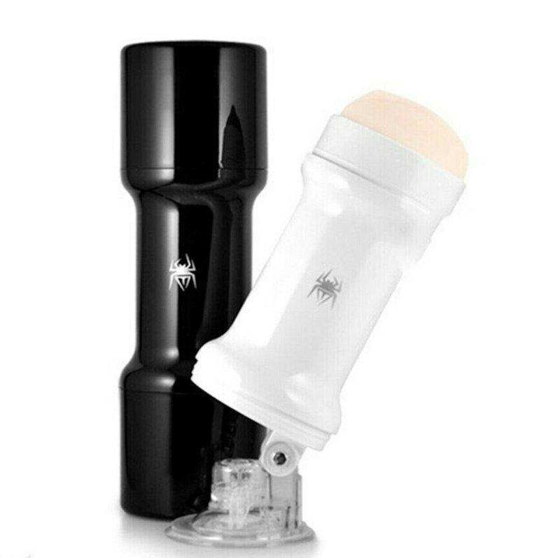 Black handheld masturbator moulded directly from the famous porn star herself! A hands-free masturbator that is lightweight and discreet in a compact canister. Spider Megan Coxxx cast vagina internal sleeve, complete with A-spot and G-spot detailing, as well as dozens of tiny nodules. The sleeve has a real skin like feel, and can be warmed to body temperature by removing it from the Spider and placing it in a sink full of hot water before use.