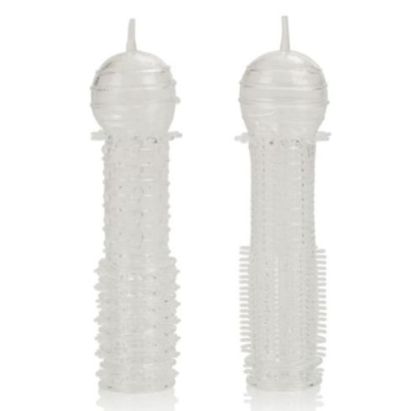 2 pack of super-stretchy Senso sleeves for enhanced sensual stimulation. Hygienically superior clear coloured, made safe and pure for body and pleasure.